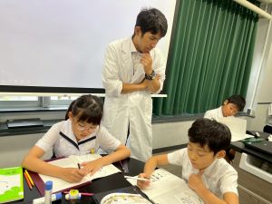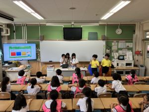 15分3回転のお店屋さんを、どの子もどのお店も粘り強く活動しておりました。おもてなし担当の子たちも、教師が声をかけるわけではなく、自分たちで時計を見ながら声をかけて盛り上げたり連れていったりしていました。次の活動が時間通り始められるように、あと何分なのか見通しをもたせたり、3分前から声をかけて導いていくチームも見られました。
