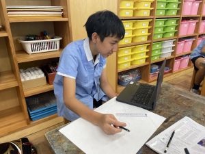 例えば、5年生の担任だった星野先生や寺村先生は、今も子どもたちを気にかけてくださり、教室をのぞいたり、授業の様子を見守ってくださいます。今日も寺村先生が図工の様子を見に来てくださいました。星野先生は、廊下ですれ違うときに笑顔で手を振ってくださり、子どもたちも嬉しそうに応えています。