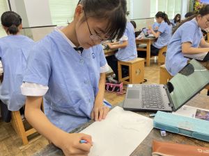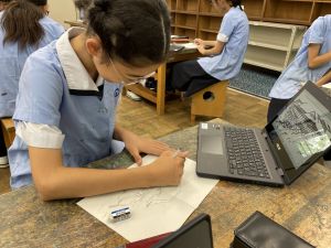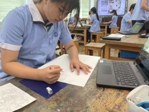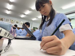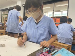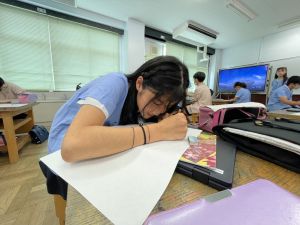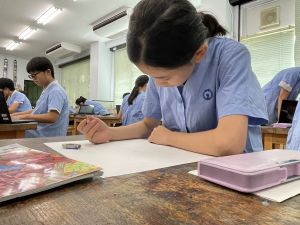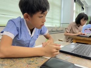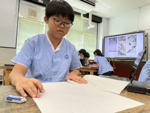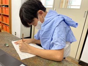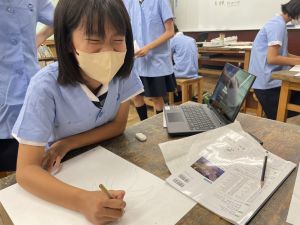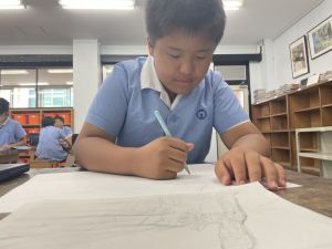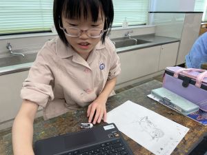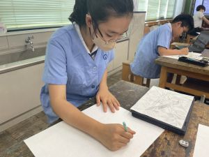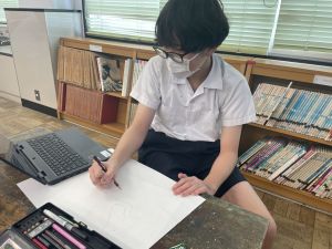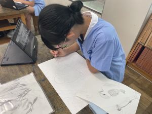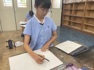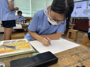 構図をどうするか、鳥をどの位置に描くか、背景をどう表すかなど、悩みながらも真剣に取り組む姿が見られました。どんな作品に仕上がるのか、完成が今からとても楽しみです。