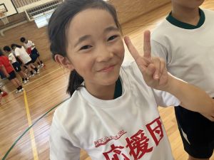 応援団は、6年生の心構えを確認している間に、4・5年生はユニフォームを着させてもらいました。