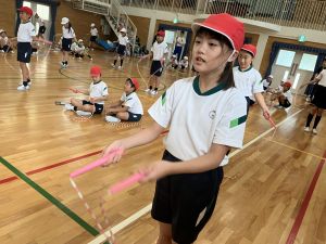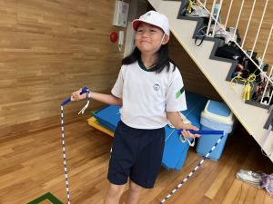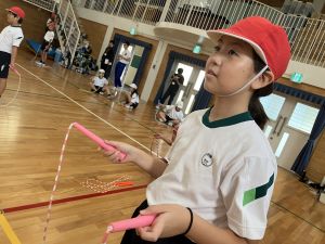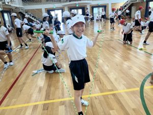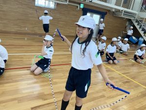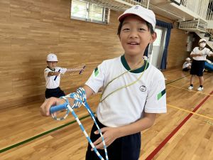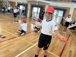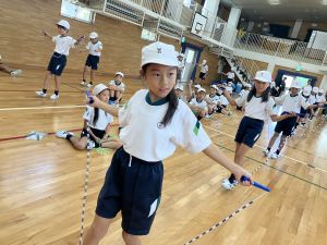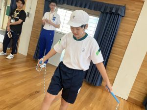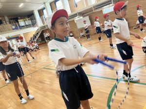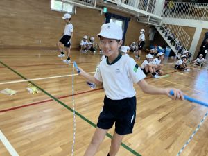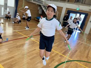 縄跳びダンス、先生は初めて本格的に拝見しましたが、しっかり跳べるかっこよさよりも、失敗してもしっかり回復できるすごさを感じましたよ。音楽に合わせられるように粘り強く練習していきましょう。