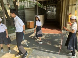 朝から集まる応援団たち、自主的になわとび練習する姿も見られました。