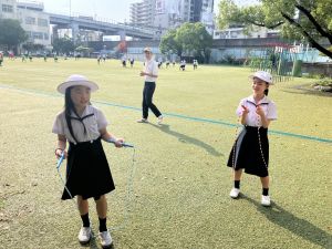 朝から集まる応援団たち、自主的になわとび練習する姿も見られました。