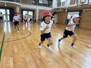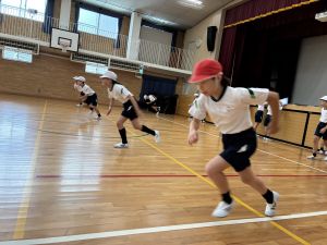 また、本日の体育科の授業では、短い距離を速く走る練習をしました。