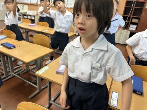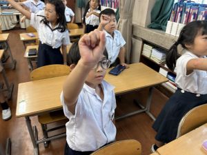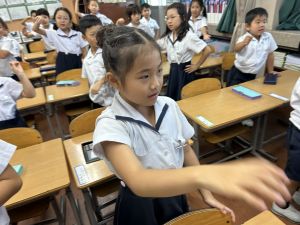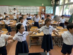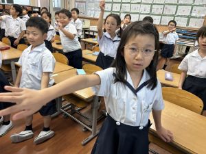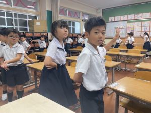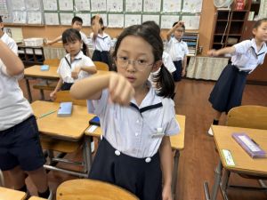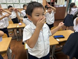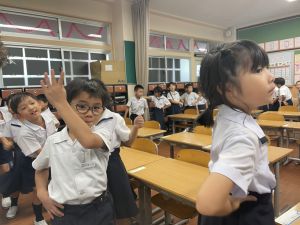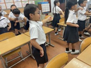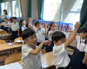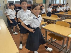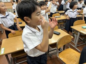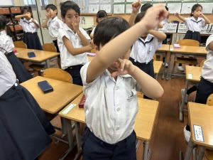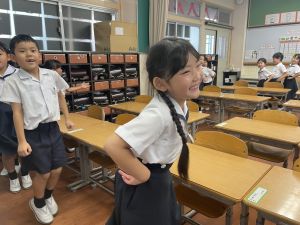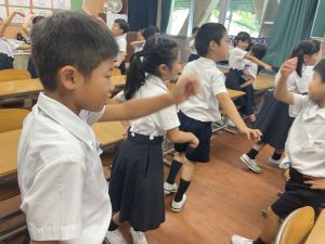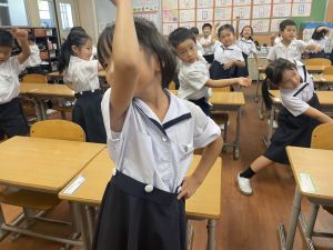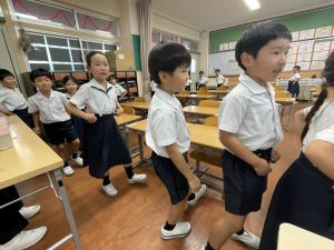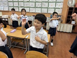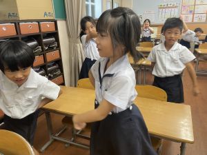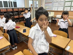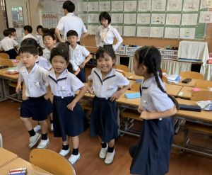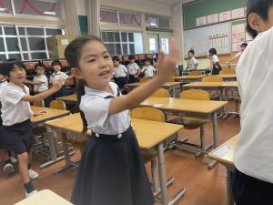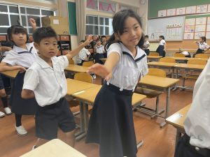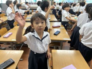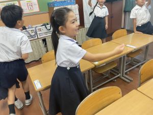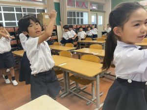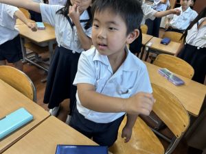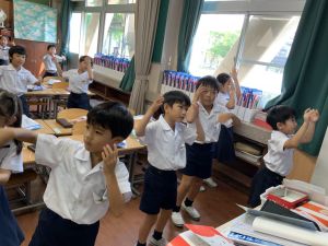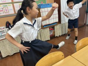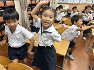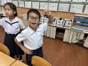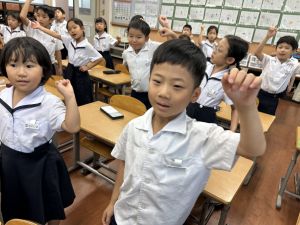 どんな授業でも、子どもたちは元気ハツラツと楽しんで取り組んでいます。体を使ったり、表情を変えたりしながら、学習に向かう姿はとても生き生きとしていて、見ているこちらも元気をもらえます。