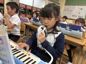 聞いてみると、また違った雰囲気を感じ、音のおもしろさを感じている様子でした。また、その後には、もう一度、歌ってみると、虫の鳴き声の「チンチロ」の表現も意識することができました。