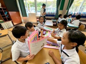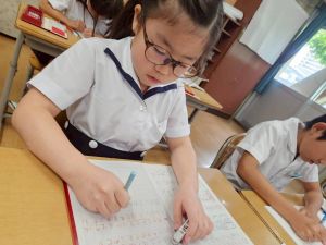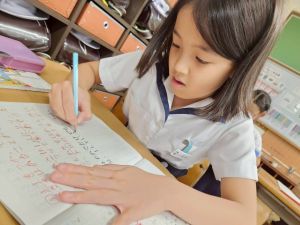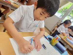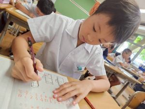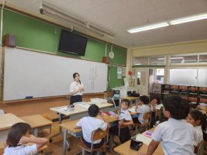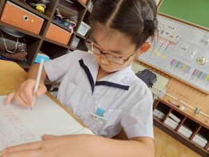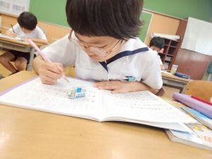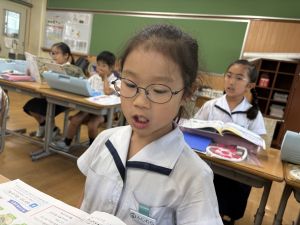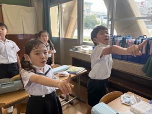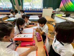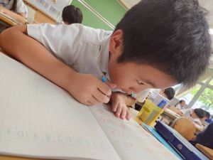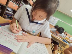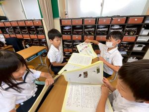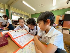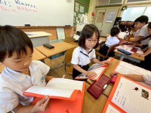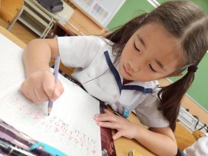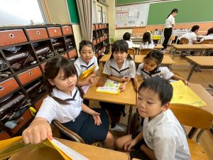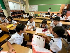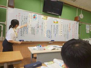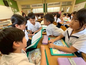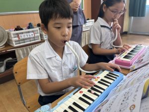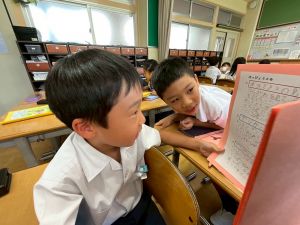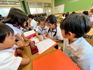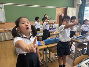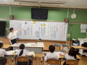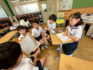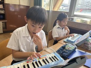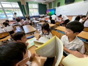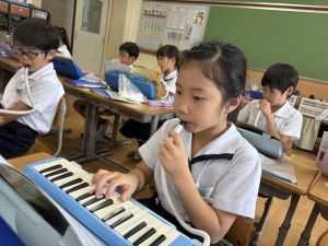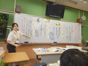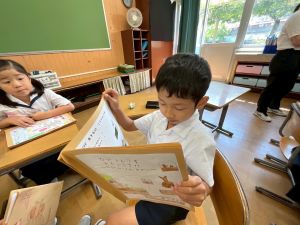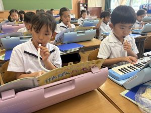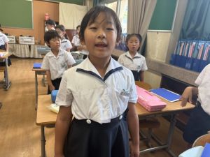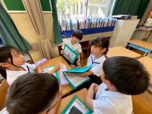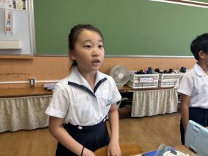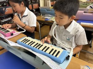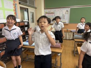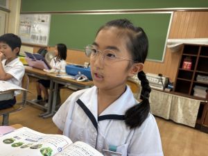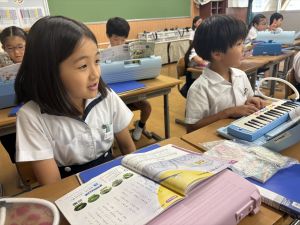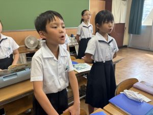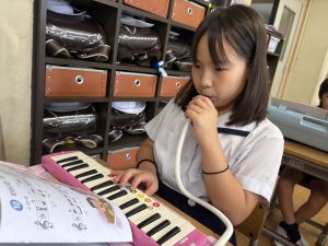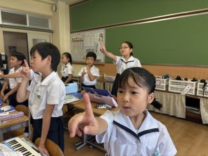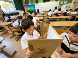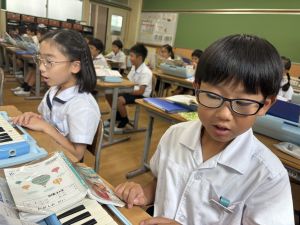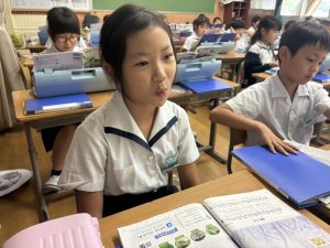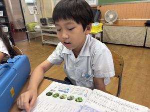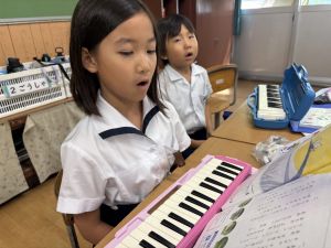 聞いてみると、また違った雰囲気を感じ、音のおもしろさを感じている様子でした。また、その後には、もう一度、歌ってみると、虫の鳴き声の「チンチロ」の表現も意識することができました。