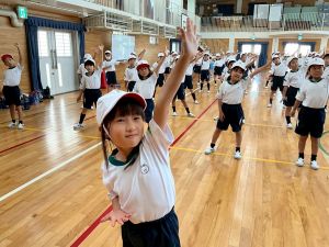 今日は、2曲目。「手のひらを太陽に」でした。新しい曲と振り付けにノリノリ♪1年生の時にやった動きにも久しぶりにチャレンジしました。