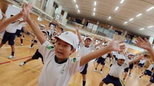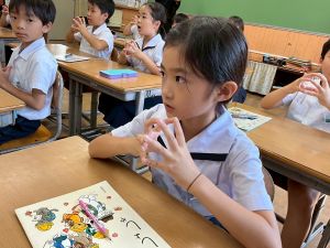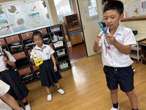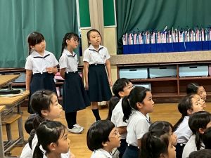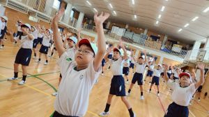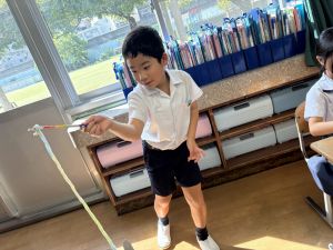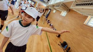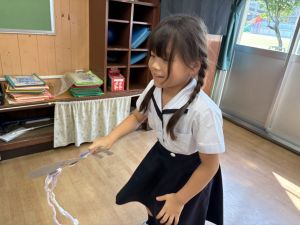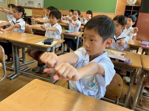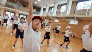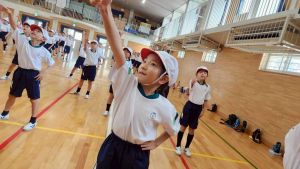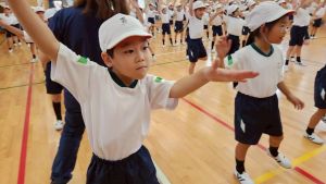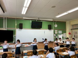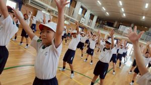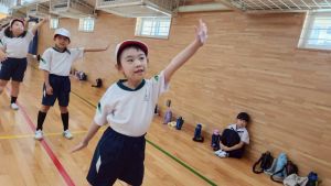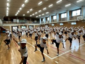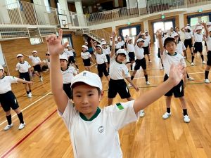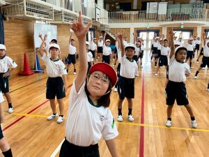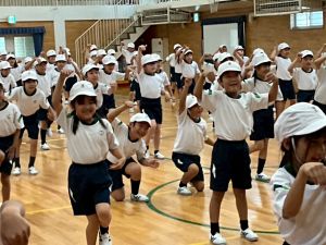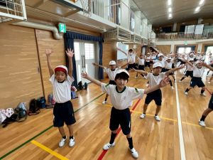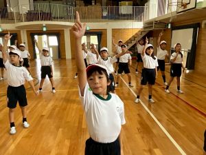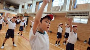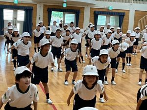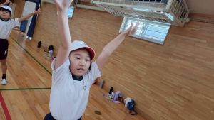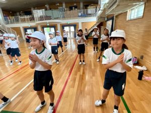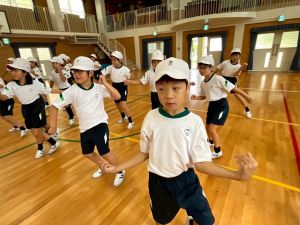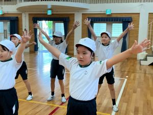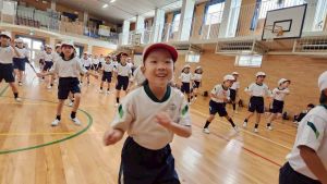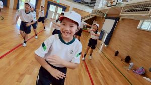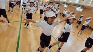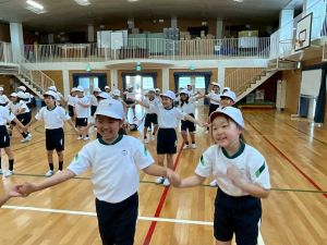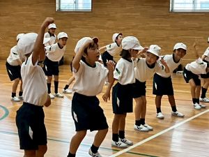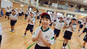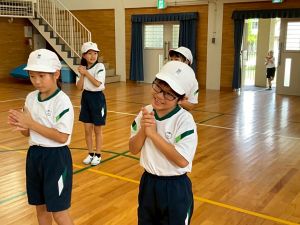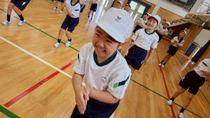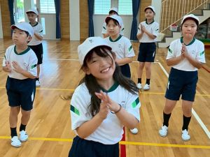 今日は、2曲目。「手のひらを太陽に」でした。新しい曲と振り付けにノリノリ♪1年生の時にやった動きにも久しぶりにチャレンジしました。