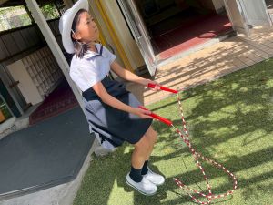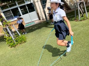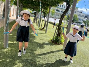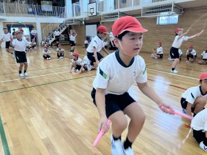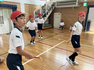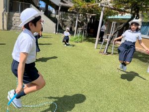 メリータイムやさまざまな時間で、友達となわとびをする姿が見られます。