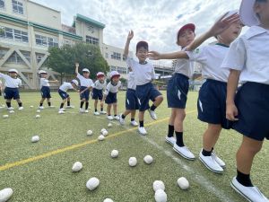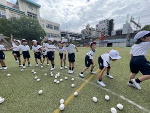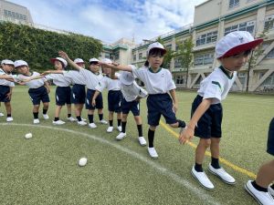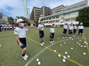簡単そうでなかなか入らない、そんな1年生ならではの玉入れを、ぜひ本番でも楽しみにしていてください。