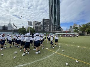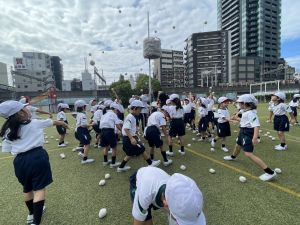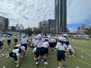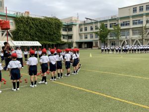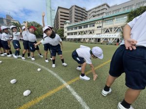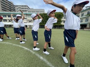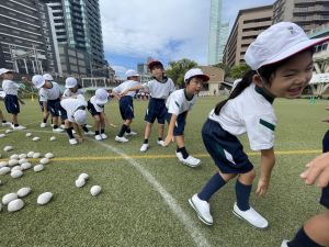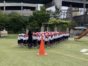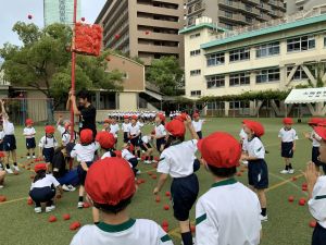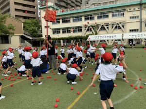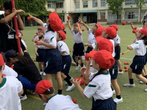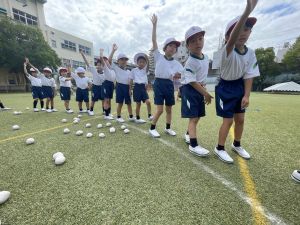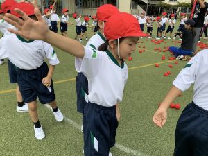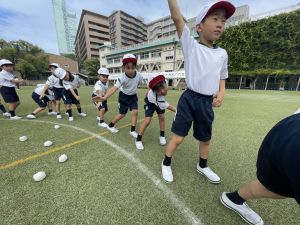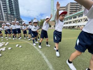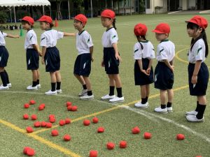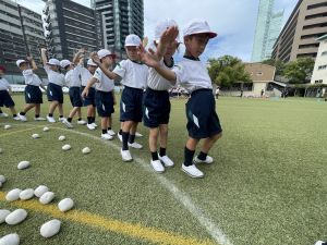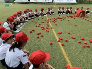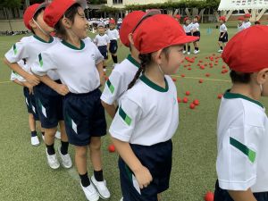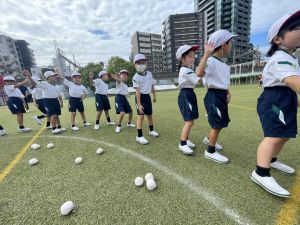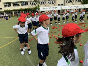 今日は初めて団体競技「玉入れ」の練習を行いました。並び方や入退場の仕方を確認したあと、実際に競技にも挑戦しました。