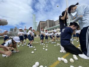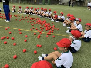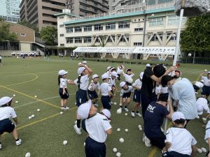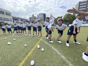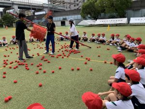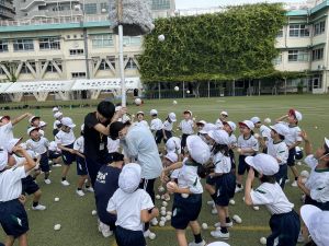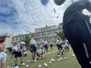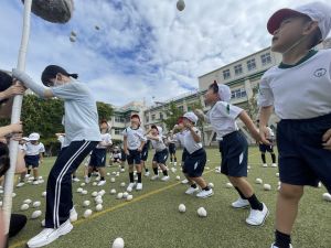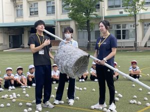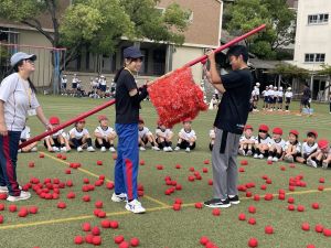 今日は、実習生が真ん中で大活躍。子どもたちの玉を体で受けながら頑張ってくれました。