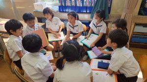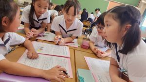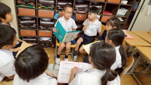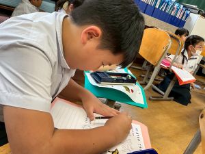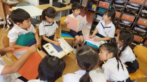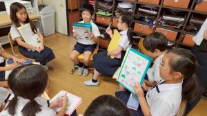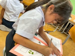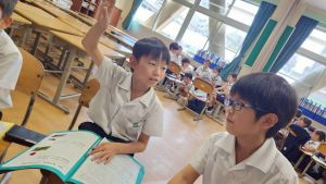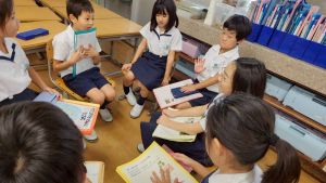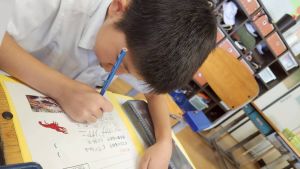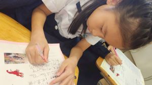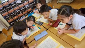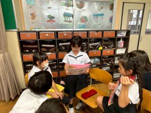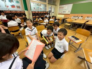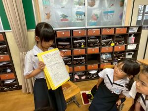 今日は、各クラス生き物交流会を行いました。一人ひとりが伝えたいことをメモに書き留め、7種の生き物チームそれぞれ練習を行ってきた子供たち。