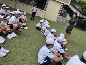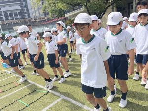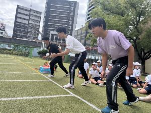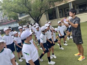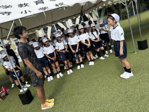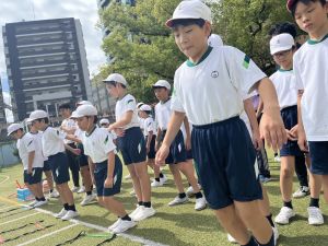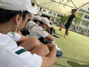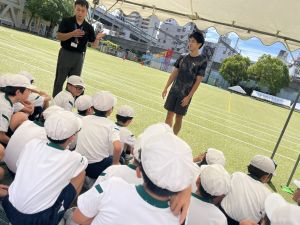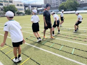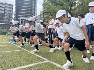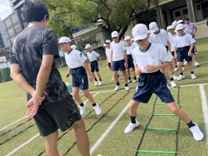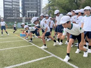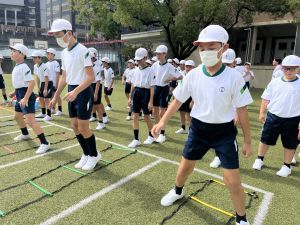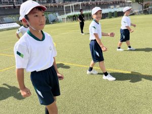 元陸上選手の江里口さん(大阪ガス所属、世界陸上にもコーチとして帯同)をお迎えし、かけっこ教室を開催しました。