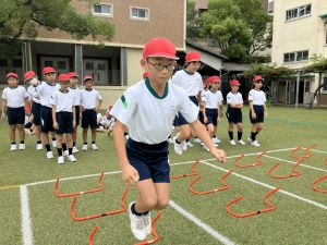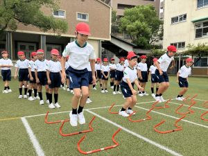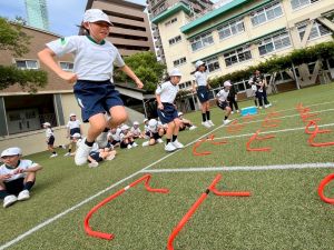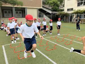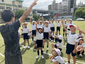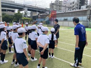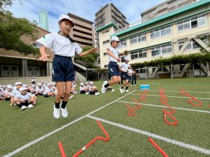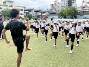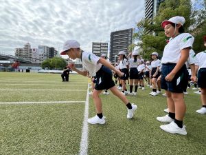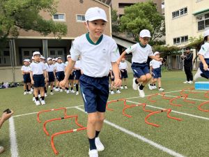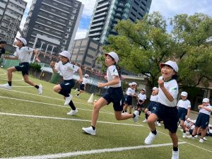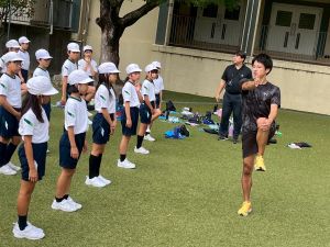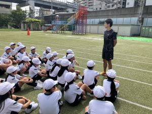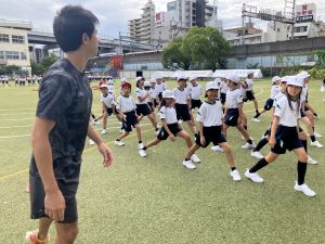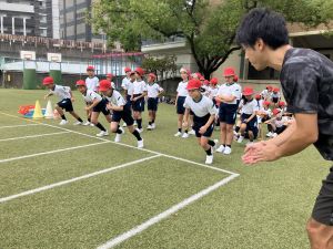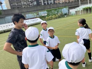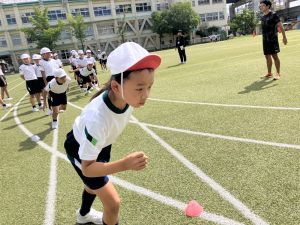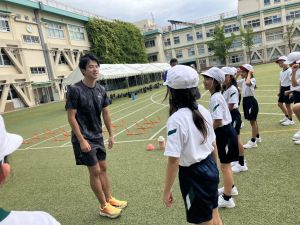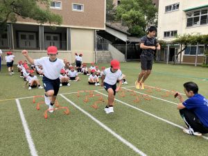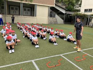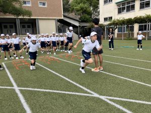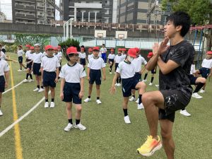 本日は、五輪元日本代表で、先日の世界陸上でもコーチとして活躍されている江里口コーチをお招きし、かけっこ教室を行いました。