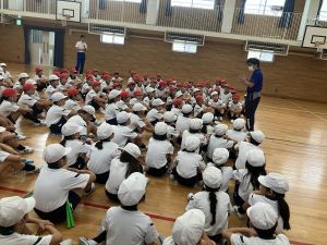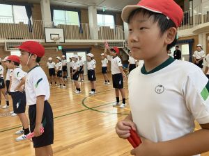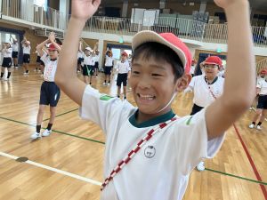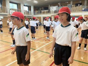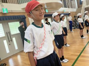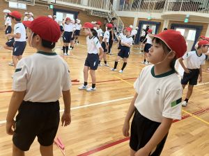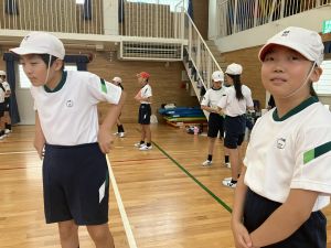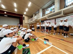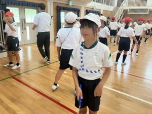 練習の最後に、運動場に出て練習の立ち位置を確認しました。涼しくなった来週が勝負です!