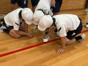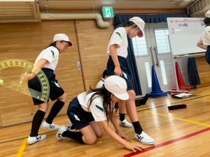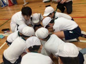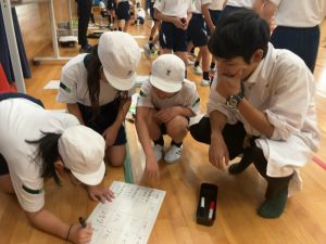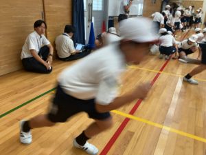 授業者の北井先生によると、3組さんは昨日江里口コーチに教えていただいた「おじぎ→足を引く→構える」のスタンディングスタートの秘密を、より詳しく考えてみたいと思っていたチームが多かったそうでした。