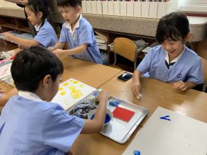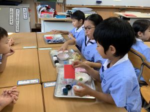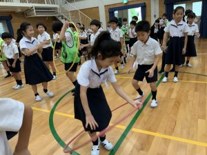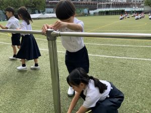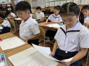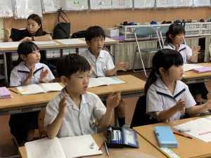 朝のトリオ活動(トリオの学年のホームページにも写真があります)