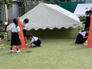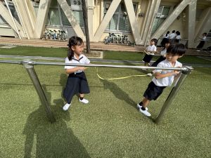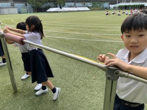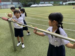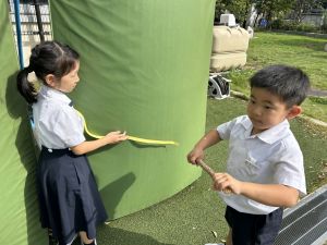 本日の朝は、学校周辺で激しい雷鳴が響き、近くに落雷するほどの天候となりました。一時は「停電するでのは!?」と心配もありましたが、時間の経過とともに天気は回復し、外で遊べるほどに落ち着きました。
