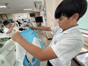 10.01.“見て見て~!”笑顔あふれる法被づくり