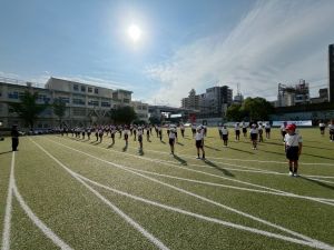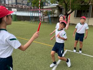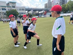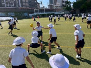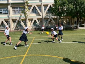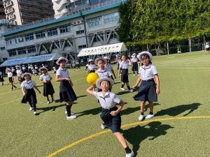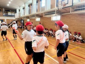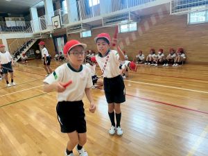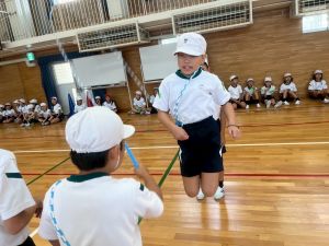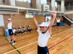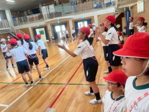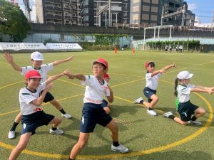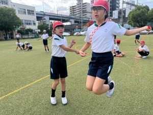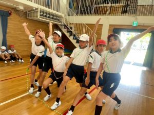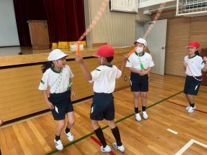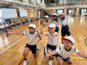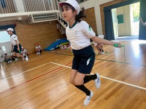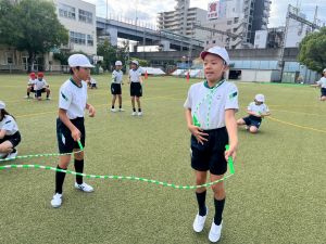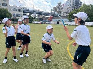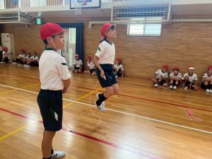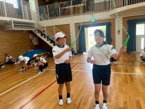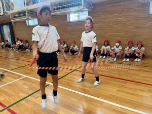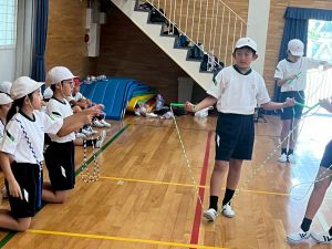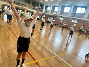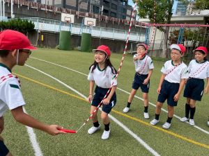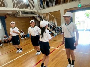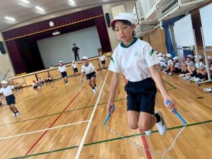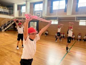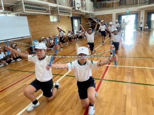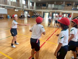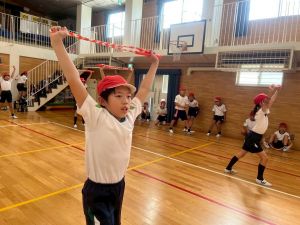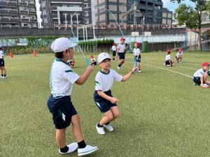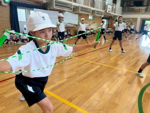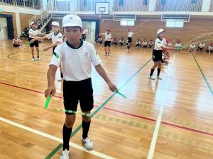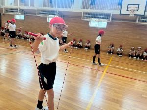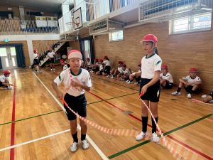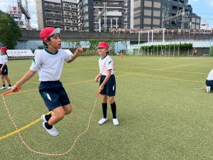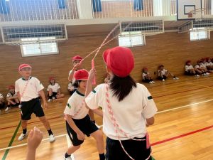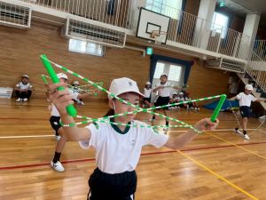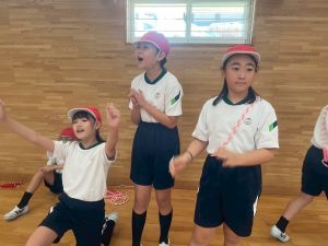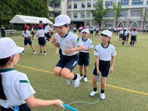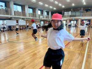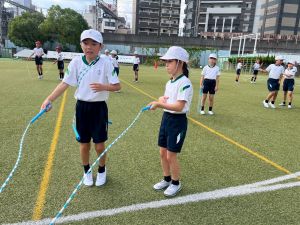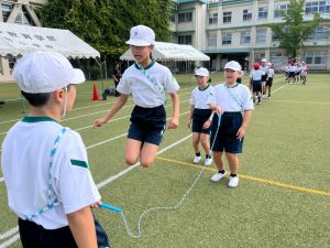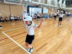 スポーツデーのなわとびダンス、運動場は本日で2回目です。