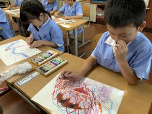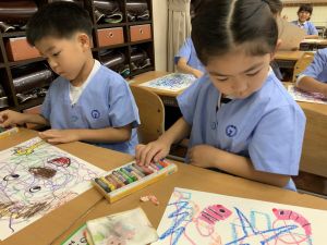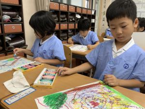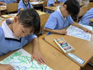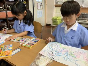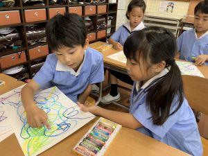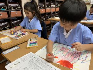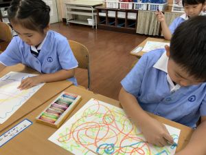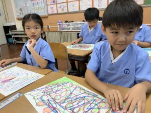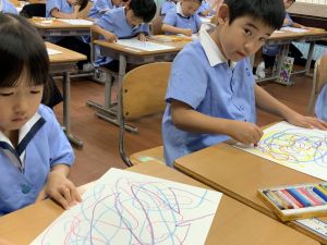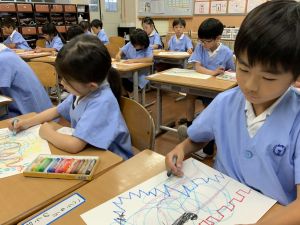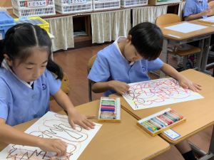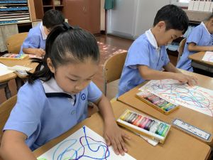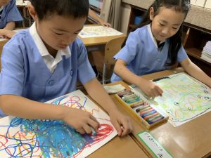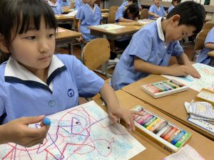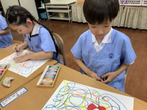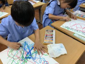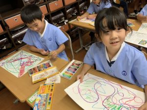 今日,図画工作をしました。線シリーズ〜クレパス編