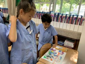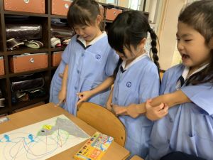 友だちの絵を鑑賞して楽しく話したり,新しい何かを見つけて伝えたりする姿もありました。