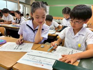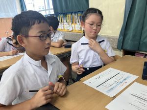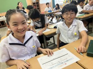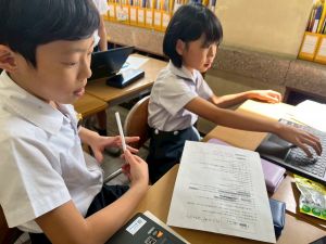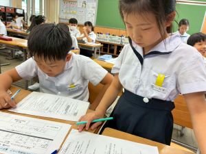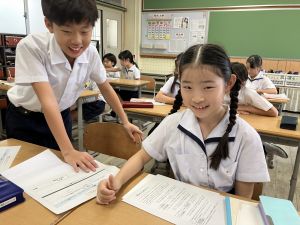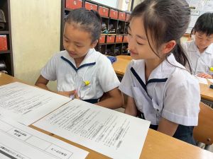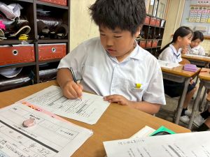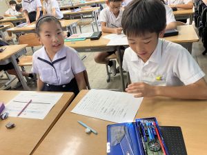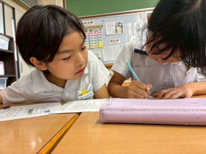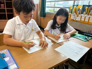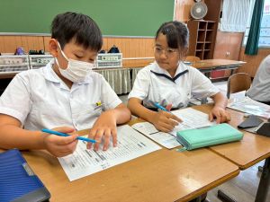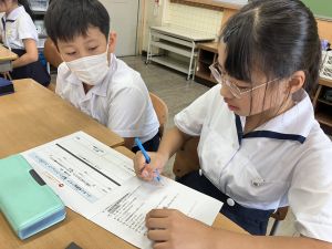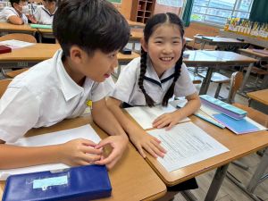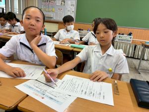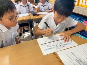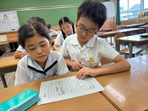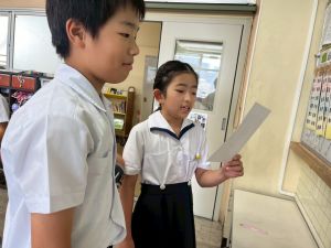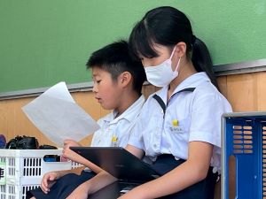 本日の子どもたちの様子を見ると、いただいた台本が自然な流れになるように加筆したり、実際にやってみたり、休み時間も自主的に練習したりする姿が見られました。クラスでの漫才ワークショップは、昨年度はクラス発表の際に台本を見ながら発表していた子もいましたよ。それでも十分、皆さんの大事な経験となるでしょう!だからこそ、まずは軽い気持ちで試してみてくださいね。