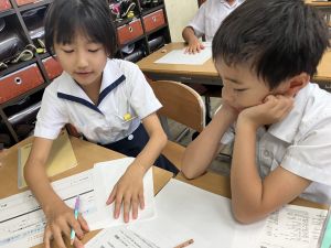10月15日(水)のSTEAM DAYは、昨年度に引き続き、吉本放課後倶楽部さんが講師として来校され、4年生は漫才ワークショップに取り組みます。本日、コンビの名前ぎめと漫才の台本を決めました。