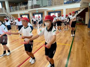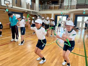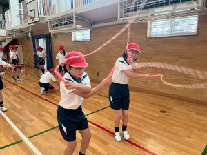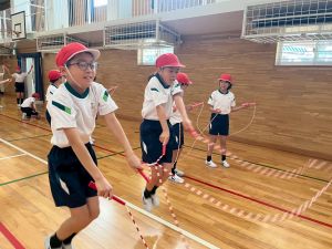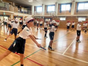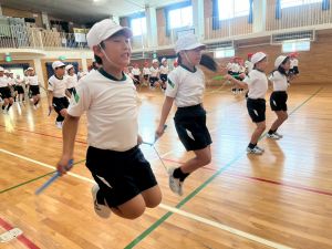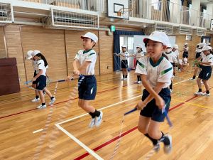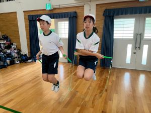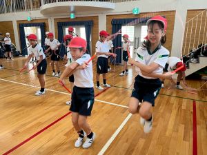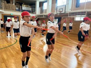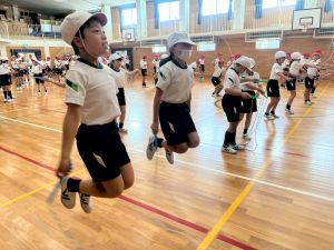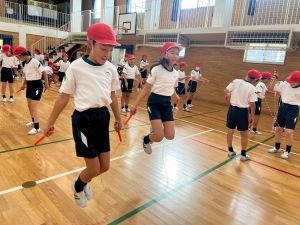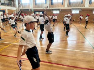 スポーツデーに向けた取り組みとして、本日でなわとびダンスの全ての技の流れが紹介されました。