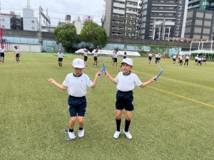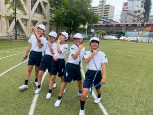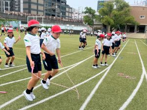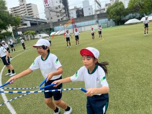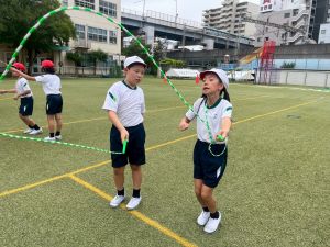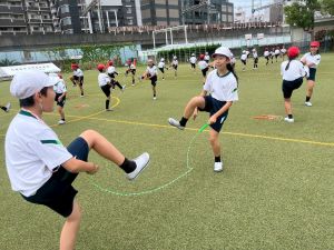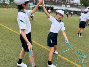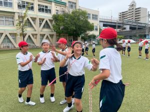 4年生の団体競技の名前を「Jump! 横には 仲間がいるよ 」にしました。