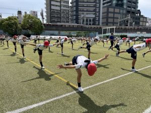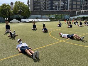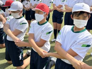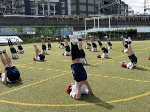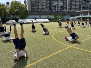 今日の組体操では,5人技と10人技,そしてウェーブに挑戦しました。どのように手を組むのか,どこに足を乗せるのかなど,一つ一つ確認しながら安全に行いました。
