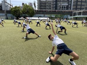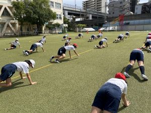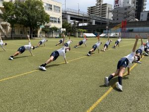 (以下の運動場での練習は、昨日のものです。)