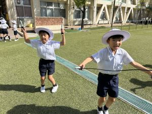 かけっこをしたり、鉄棒で遊んだり、ひなまつランドで生き物を探したり、なわとびをしたり…。どの姿も本当に楽しそうで、見ているこちらまで元気をもらえます。
