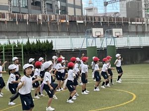 後期の早速の授業は、スポーツデー練習でした。いよいよ一通り、流すことができました。