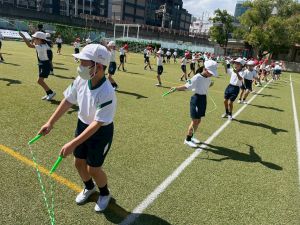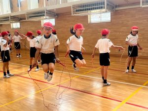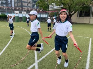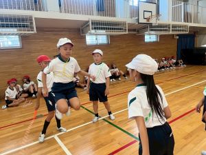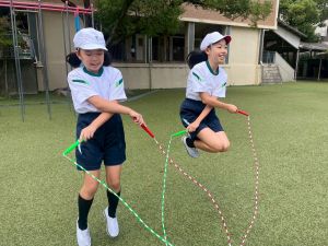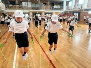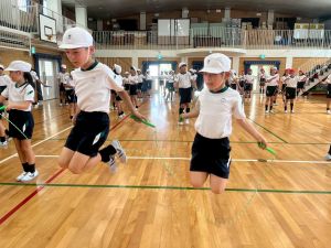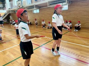 スポーツデーに向けて、なわとびダンスも調整に入っています。
