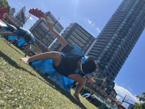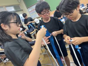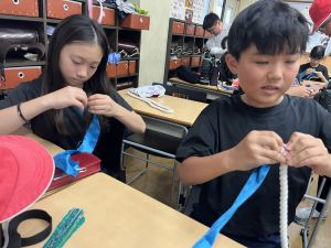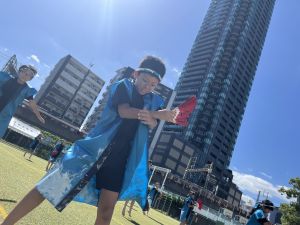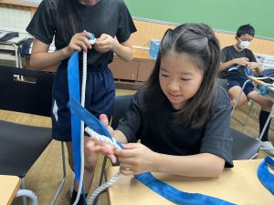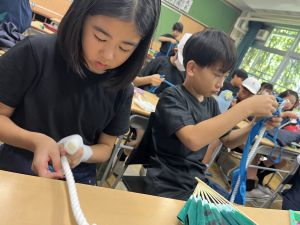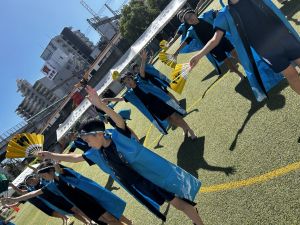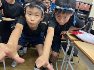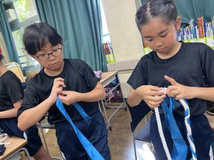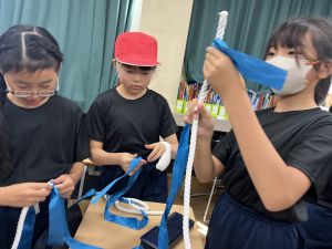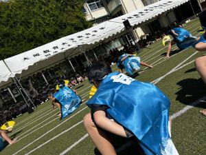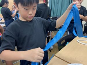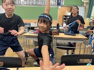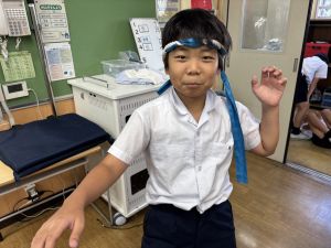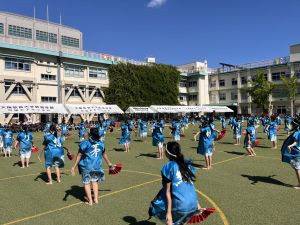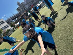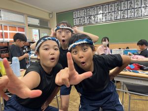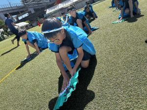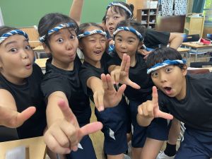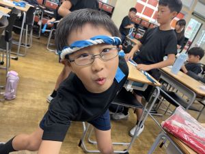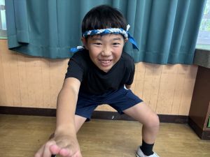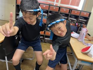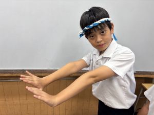 ねじりはちまきが演技中落ちてしまう子がたくさんいます。不安な子は、お家で練習する、被る形に加工する、などサポートお願いします。