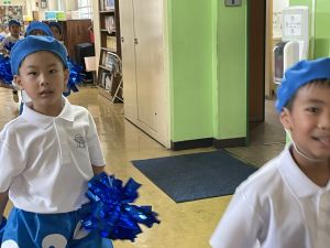 高学年のスポーツデーの後、1年生の教室の片づけを手伝ってくれた卒業生!!ありがとう!!
