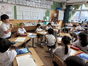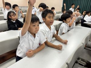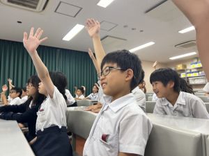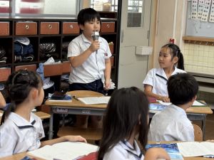 6時間目には、学年で集まり、明日のSTEAM DAYに向けて、話をしました。