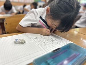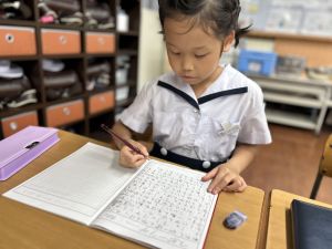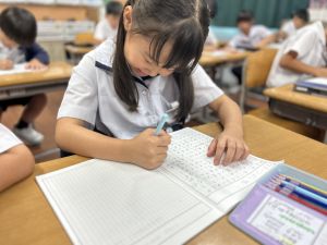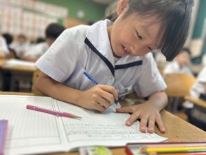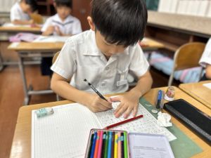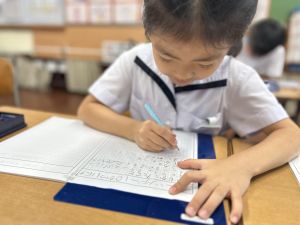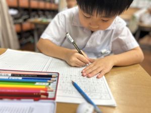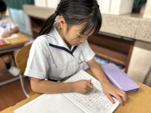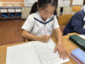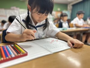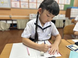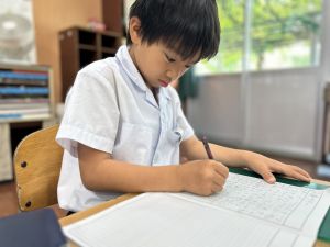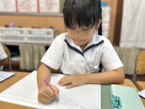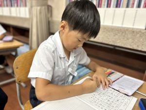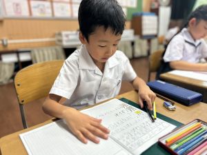 この1時間を通して、自分がどんなことを頑張ったのかを整理し、振り返ることができました。ただ活動を終えるだけでなく、「書く」ことで自分の成長を実感し、次の目標につなげていくことができます。こうした振り返りの時間は、子どもたちにとってとても大切な学びのひとつです。