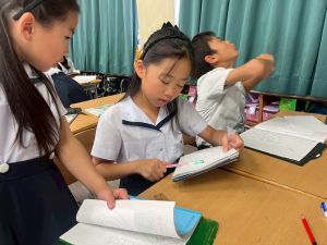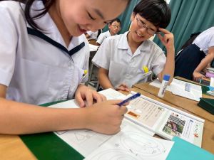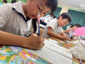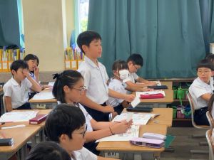 保健の授業では、4年間の自分の身長・体重のデータをもとに、子どもの成長や自分の成長について考えていました。