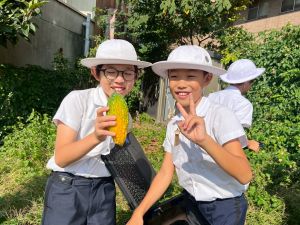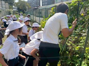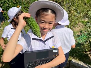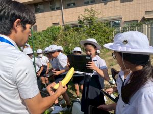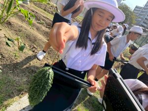 赤いゴーヤ、黄色いキュウリ、そしてヘチマ。色とりどりの野菜たちは不思議がいっぱいでした。