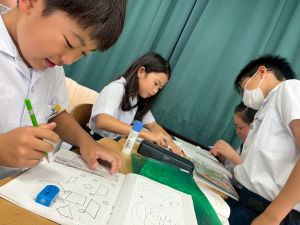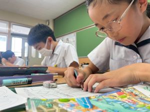 算数の学習では、さまざまな四角形の仲間分けや関係について考えていました。
