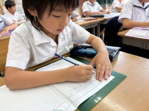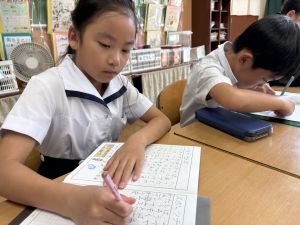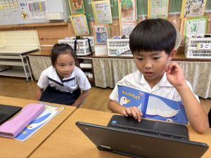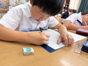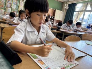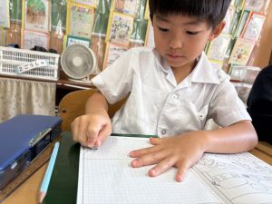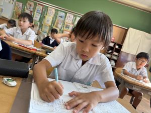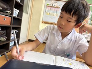 久しぶりに算数の学習や来週の図工に向けて、秋探し等、各教科の学習にしっかり取り組む149の姿がありました。