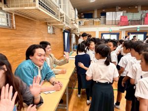 自分たちでおもちゃを作り、そのおもちゃを遊んでいただくということにチャレンジしようと思っています。だから、たくさんの箱やトレー、キャップ、カップなどをつかって、これからおもちゃを作ります。