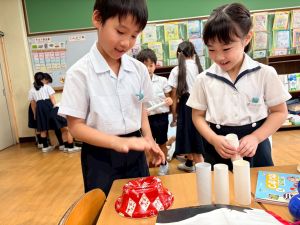 お知らせ ◯スポーツデーのクラス写真は、人数が揃い次第、撮影しています。また、撮影後は衣装の方を持って帰っていますので、ご確認お願いします。 〇漢字ドリル上は、終わりましたので、お家で保管してください。また、算数ドリル上も終わっているクラスは保管してください。 〇本日、生活の学習でおもちゃづくりの話をしました。おもちゃについて調べたり、設計図のイメージを考えたりすると思います。少しご協力いただけると助かります。よろしくお願いします。 |
