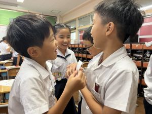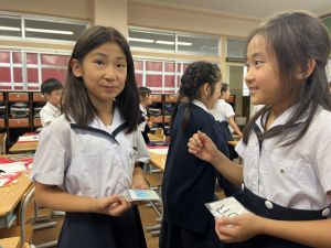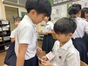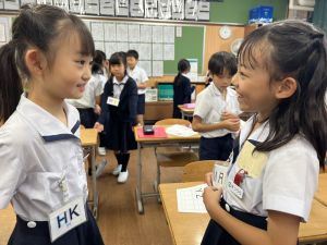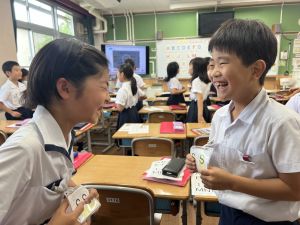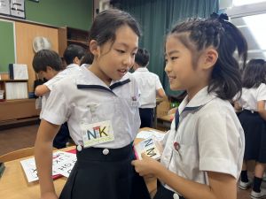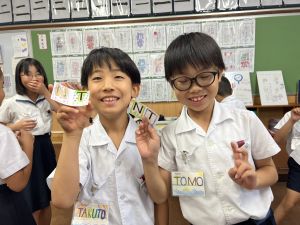 自分の姓名をイニシャルで表すと?イニシャル名札をつくって、いざ交流がスタート!!