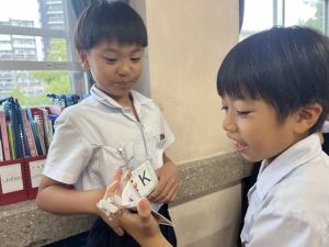 校内でも、隠れているアルファベットを以前に探しにいきましたよね。