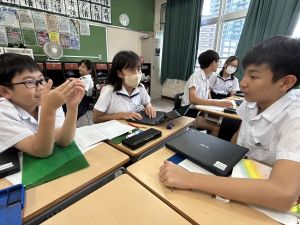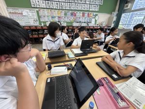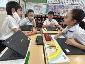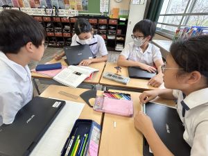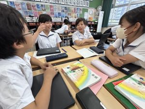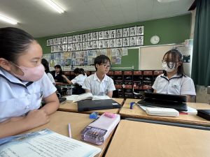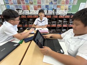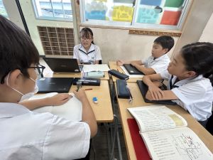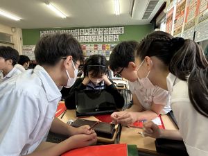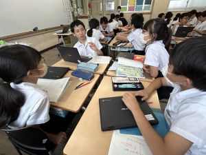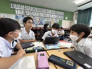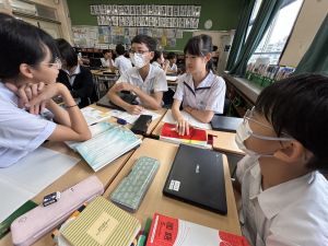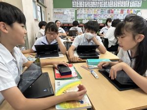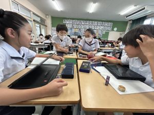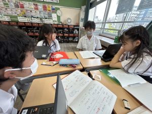 国語科では、「賢治ストリート プロジェクト」として、1~5年生に宮沢賢治や賢治の作品に親しんでもらえる企画をしようと取り組んでいます。まずは、自分たちが「やまなし」などの作品や宮沢賢治の伝記を読んで、考えを深めています。